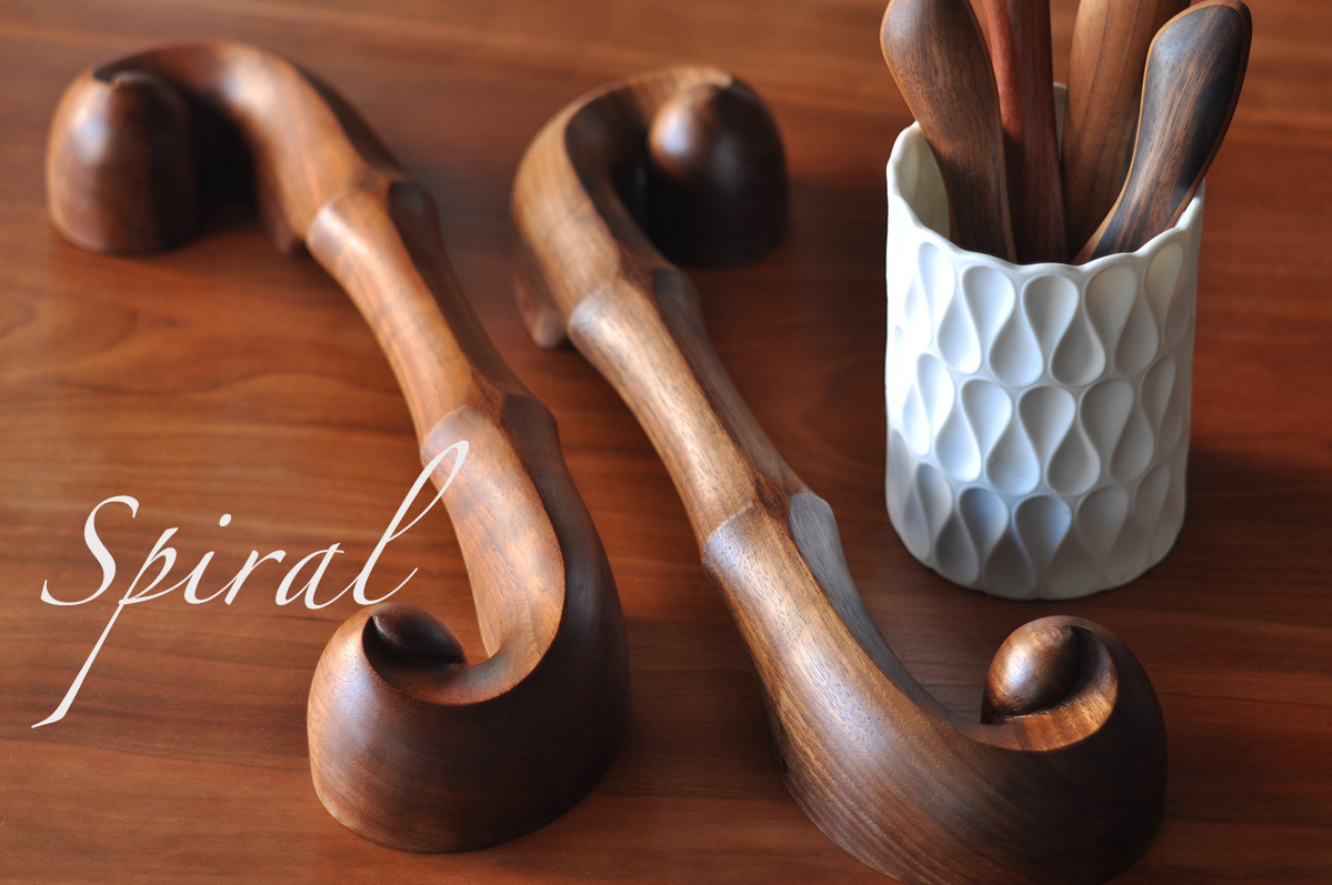 The form, which casts a deep spiral shadow, exerts a sculpture-like presence. If they are mounted on the front door of a second house,