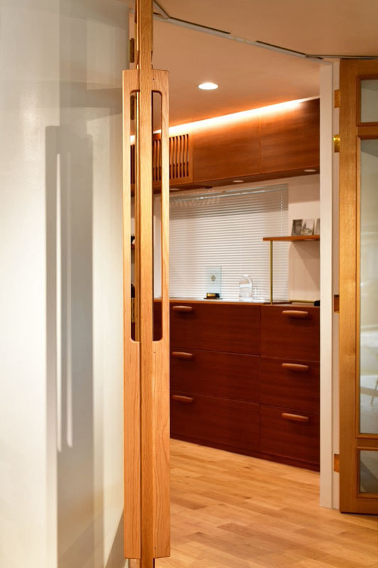 Aタイプは長さに応じて脚2,3,4〜箇所でドアに取り付け(ドア左側)