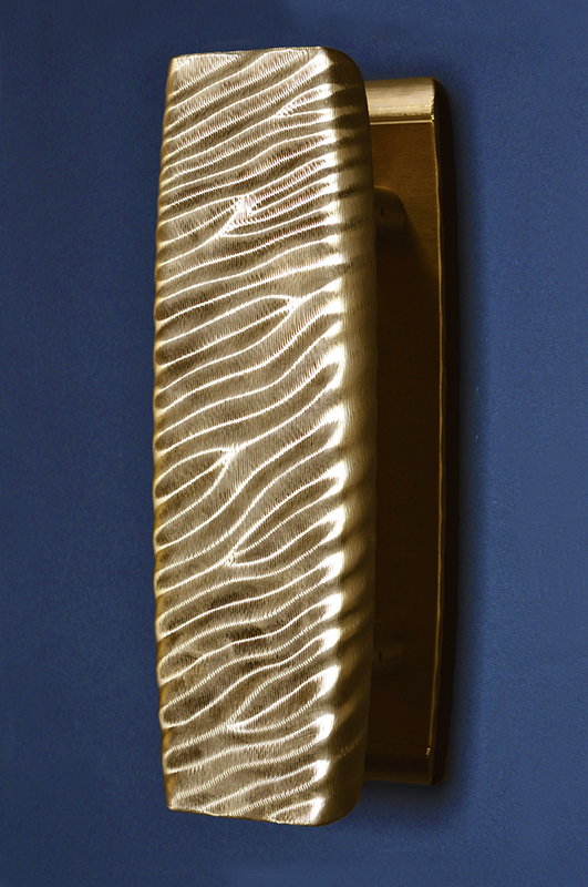 La série de poignées de portes Vagues est conçue d’après ce type d’expériences que tout le monde peut avoir dans l’environnement. Elles donnent un aspect naturel (arbres, eau, vent, etc) et ce, même dans un espace intérieur urbain moderne. Les motifs d’ondulations sculptés à leur surface ont un effet visuel qui varie suivant les différentes conditions de la lumière et les différents angles.