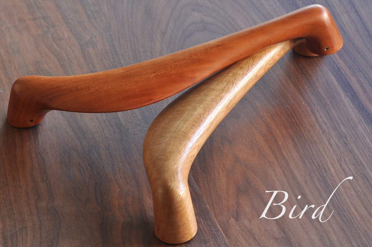 Une forme élaborée avec un déploiement horizontal comme un boomerang. Le grain du bois peut être apprécié le long de la forme très variée.