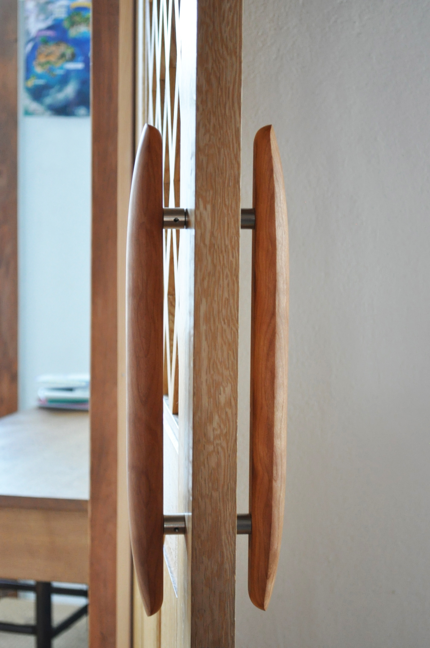 Une poignée de porte d'une forme qui rend la vie quotidienne belle. C'est une poignée de porte lisse et chaude, et cette main courante participe doucement à votre vie.