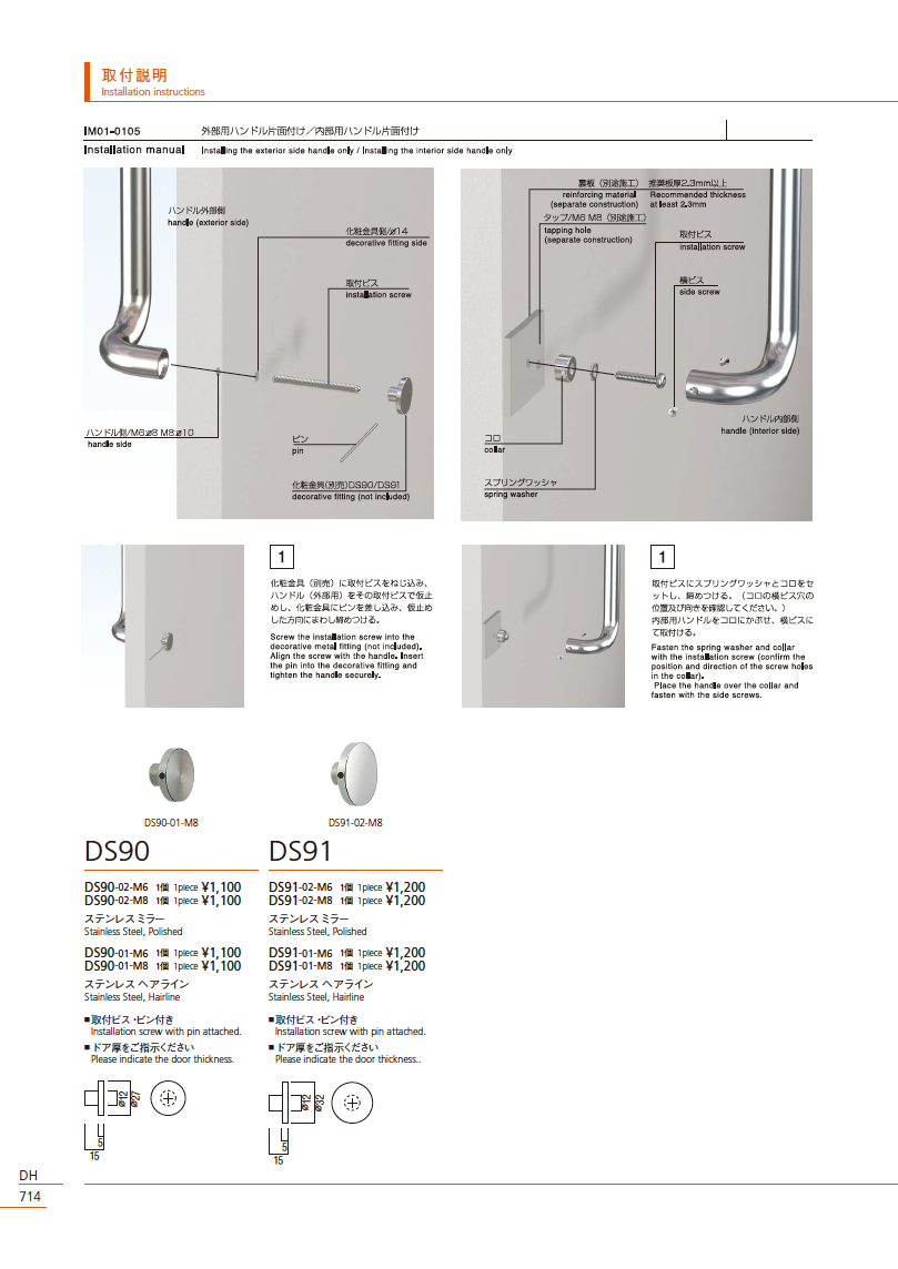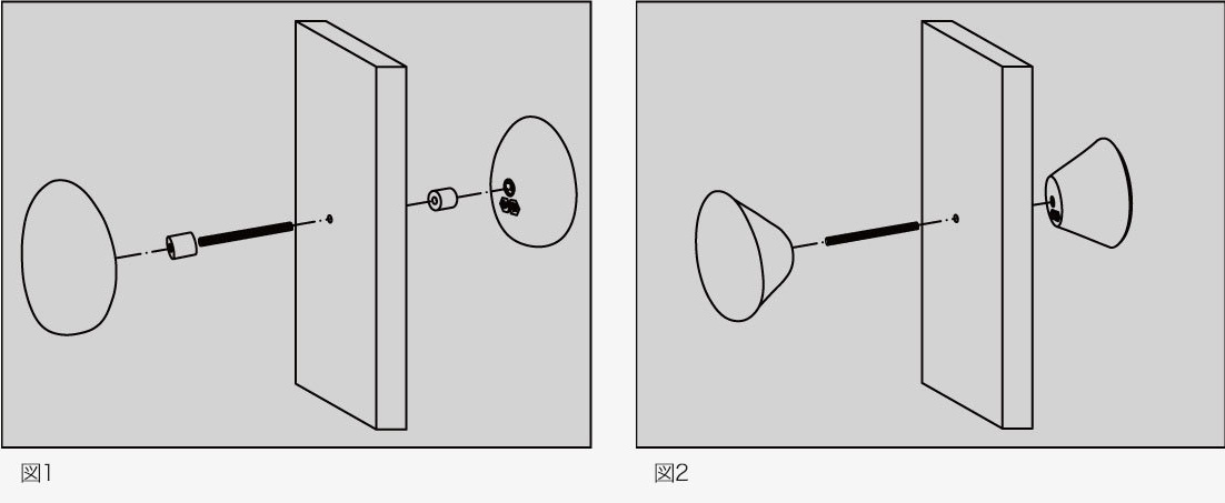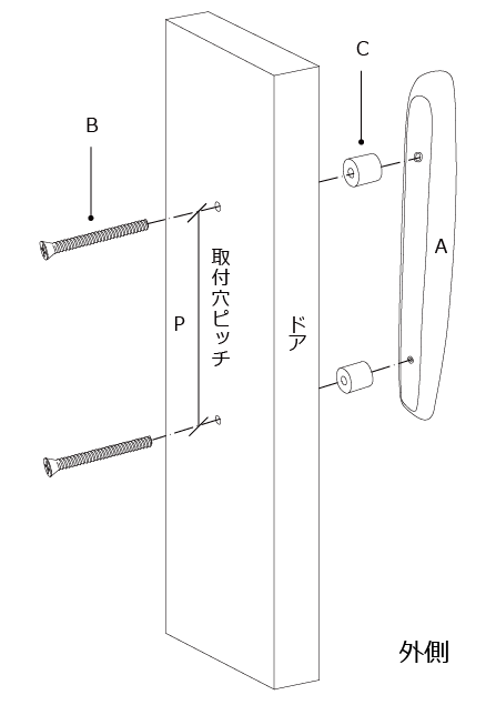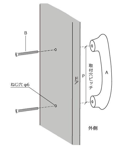 ・ガラスや金属ドアの場合は市販の化粧金具+取付ビスをお使いください。