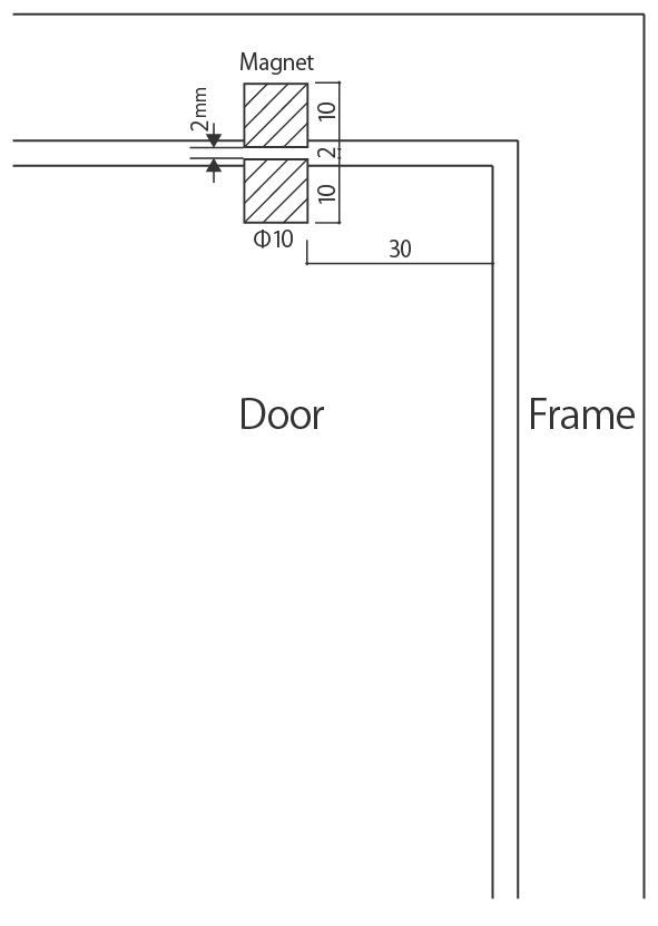 1. 取り付け位置を決め、φ6 mmの貫通穴をドアに2ケ所あける。