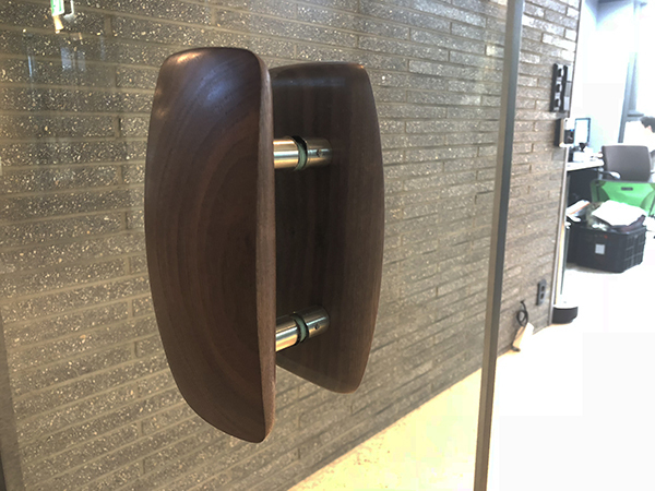 強化ガラスドアへの取り付けについては、穴のサイズに関わらず、当社でご用意できますのは、M5ボルト用φ7mmチューブか、M6ボルト用φ8mmチューブです。この他にプロテクトゴム、クッションシートなどガラスを保護するものが必要な場合は施工者様でご用意くださるようお願いいたします。