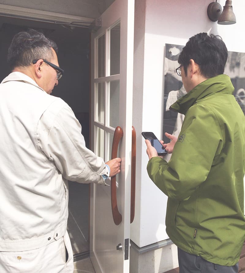 「すごくキレイになって嬉しいなぁ。」とオーナースタイリストの齋藤良輔さん。「このドアハンドル、ずっと使いたいと思ってたからね。」