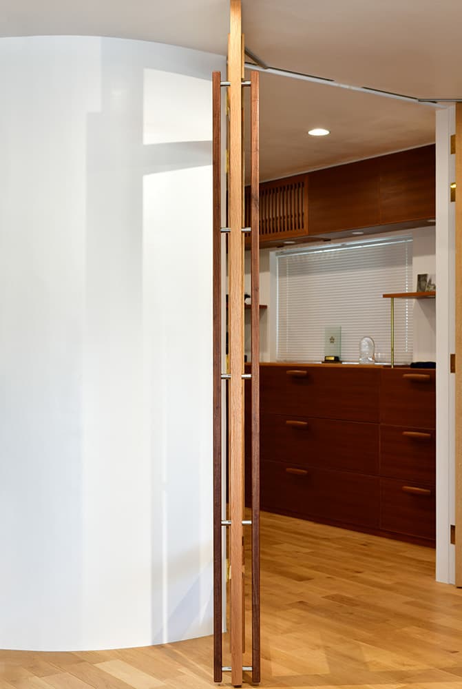 ミニマルなデザインで追求したのは、開き戸・引戸・手すりのいずれに取付けても使い勝手をよくするために、押す・引く・握るの基本的な機能を高い水準で満たすこと。
